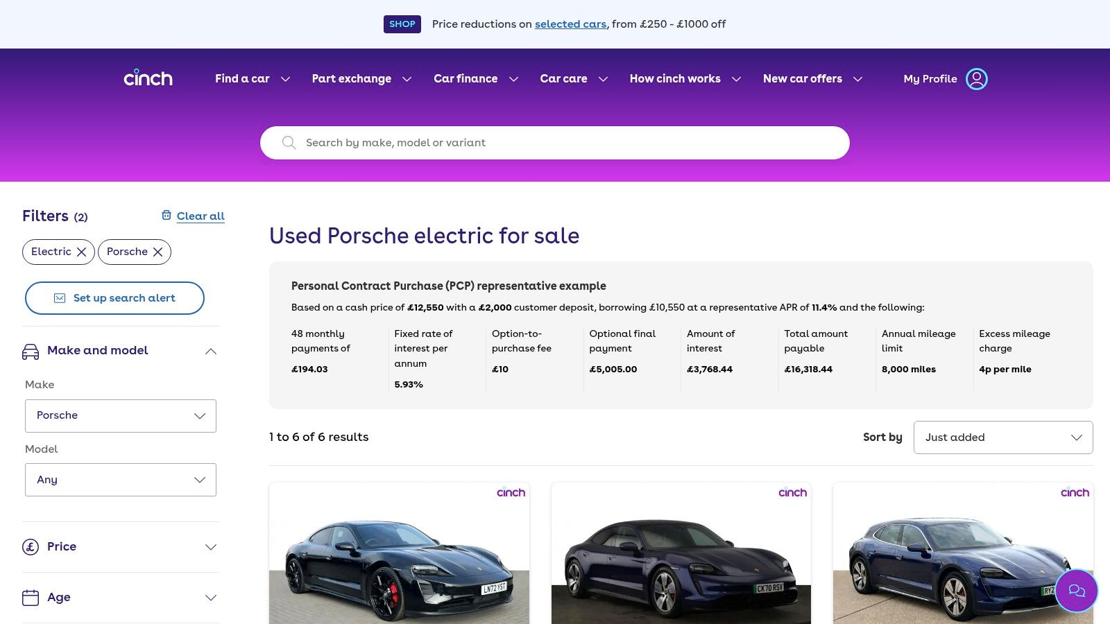 Not everyone has the patience for dealer waiting lists or the cash to spec a brand-new model. For those hunting for the best electric sports car without the new-car premium, cinch offers a refreshingly modern, haggle-free alternative. This UK-based online retailer specialises in high-quality used vehicles, and its electric performance car section often features nearly-new examples of top contenders like the Porsche Taycan, Audi e-tron GT, and high-spec Teslas.