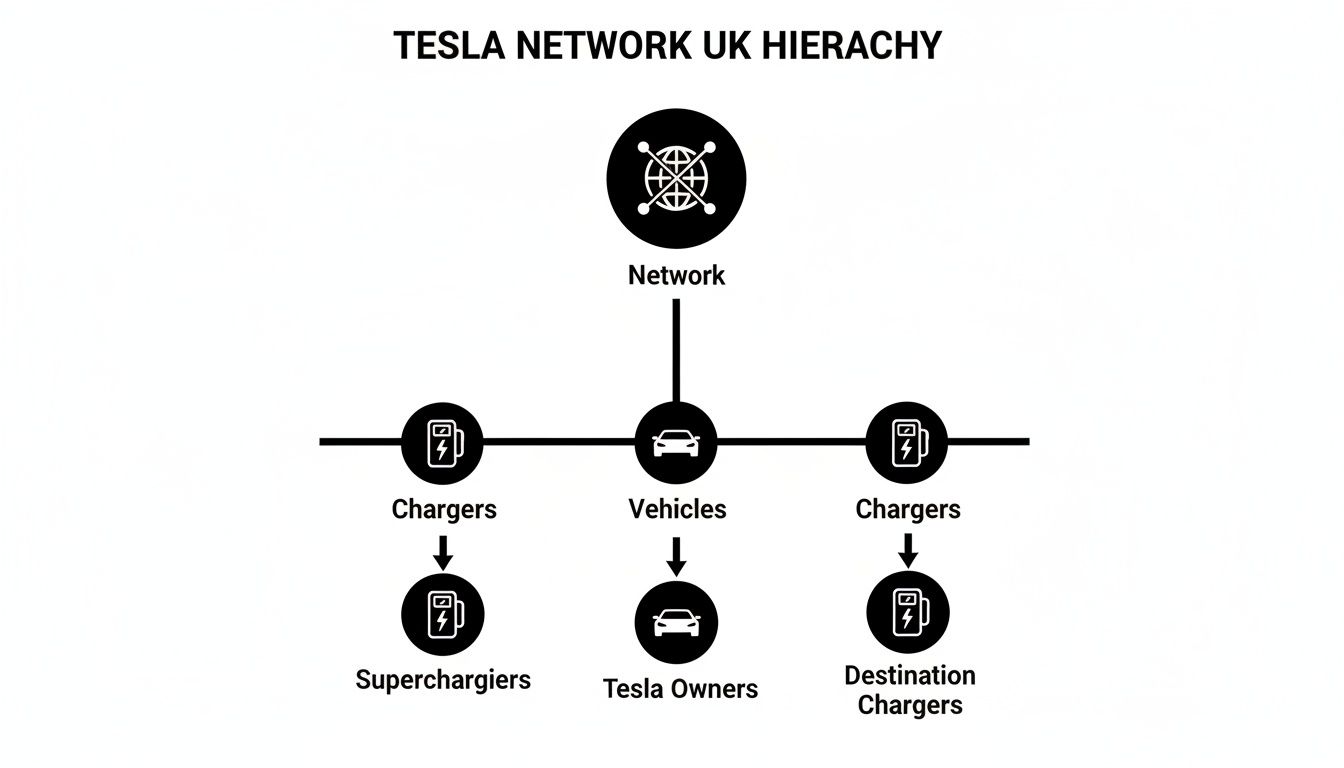 As of late 2025, Tesla has over 2,154 Supercharger charge points live in the UK. This makes it the second-largest rapid charging network in the country, hot on the heels of Instavolt. That isn't just a number; it's a lifeline for the 100,000+ Tesla vehicles now on British roads. If you're interested in the details, you can explore the latest UK Tesla data and statistics. This rapid expansion has completely changed the game, turning "where will I charge?" into a question of choice, not a panicked prayer.