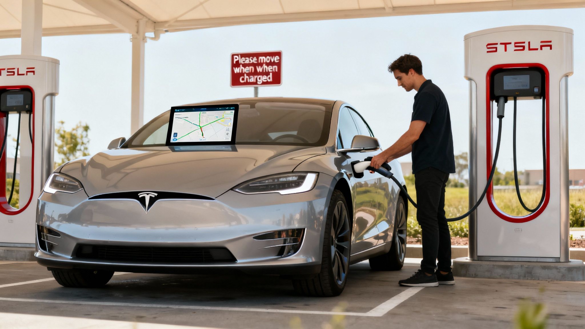 - Don't Park If You're Not Charging: A Supercharger bay is for charging, not for parking. Using it as your personal spot while you pop to the shops is the ultimate EV sin.