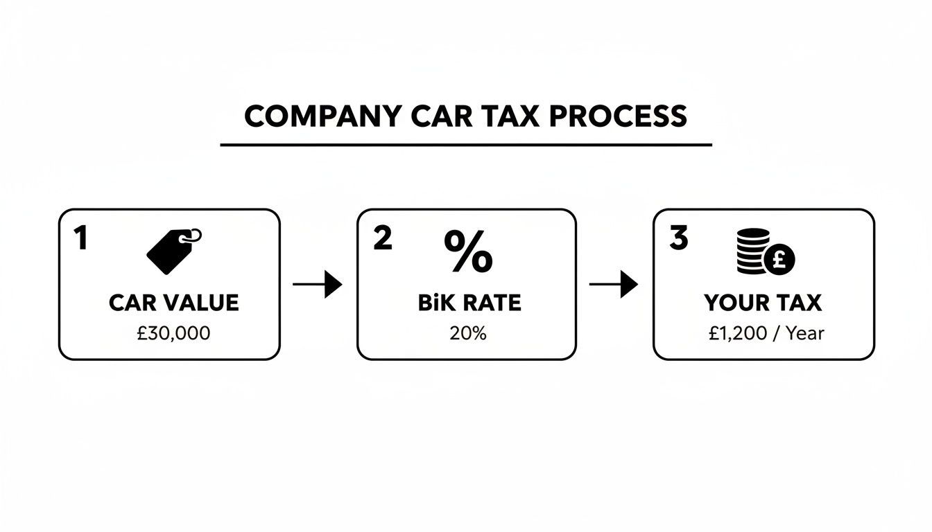 Right, let's get under the bonnet. Calculating your company car tax, better known as Benefit-in-Kind (BiK), sounds like a job for a tweed-wearing accountant who still uses an abacus. In reality, it’s surprisingly simple once you cut through the HMRC jargon.