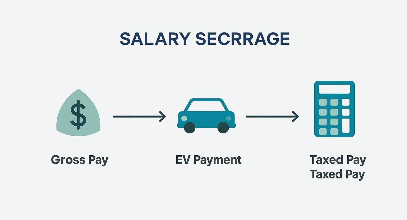 This infographic lays it out visually, showing how the money flows from your gross pay, gets diverted for the EV payment, and leaves a smaller amount to be taxed.