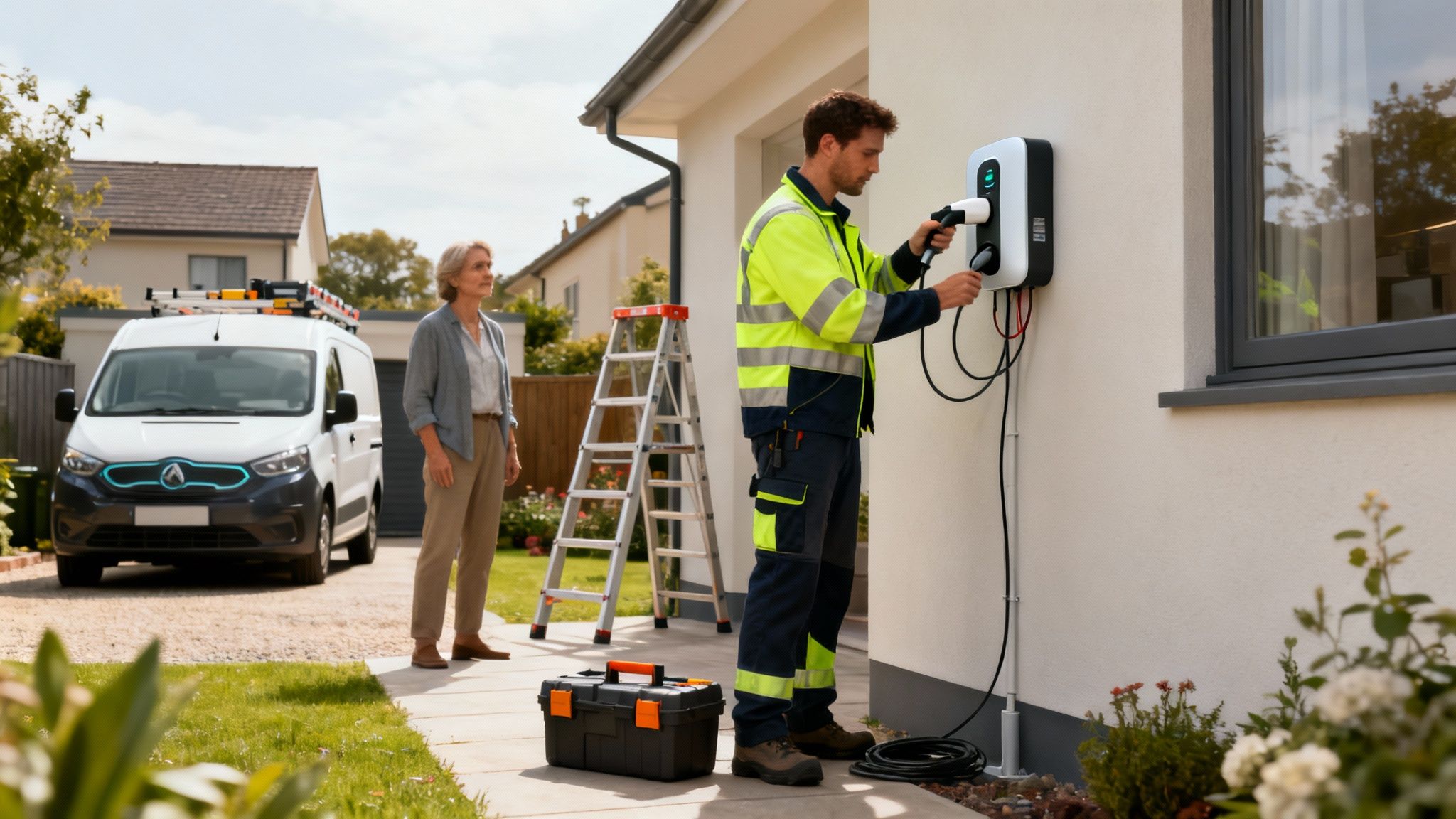 Let’s get one thing straight from the start: this is absolutely not a DIY job. Please, do not let your mate who's 'good with wires' anywhere near it . By law, installing a home charger must be done by a qualified and certified electrician. Look for someone accredited by a scheme like the Office for Zero Emission Vehicles (OZEV). It's your guarantee that they know exactly what they’re doing and will issue the safety certificates you need.