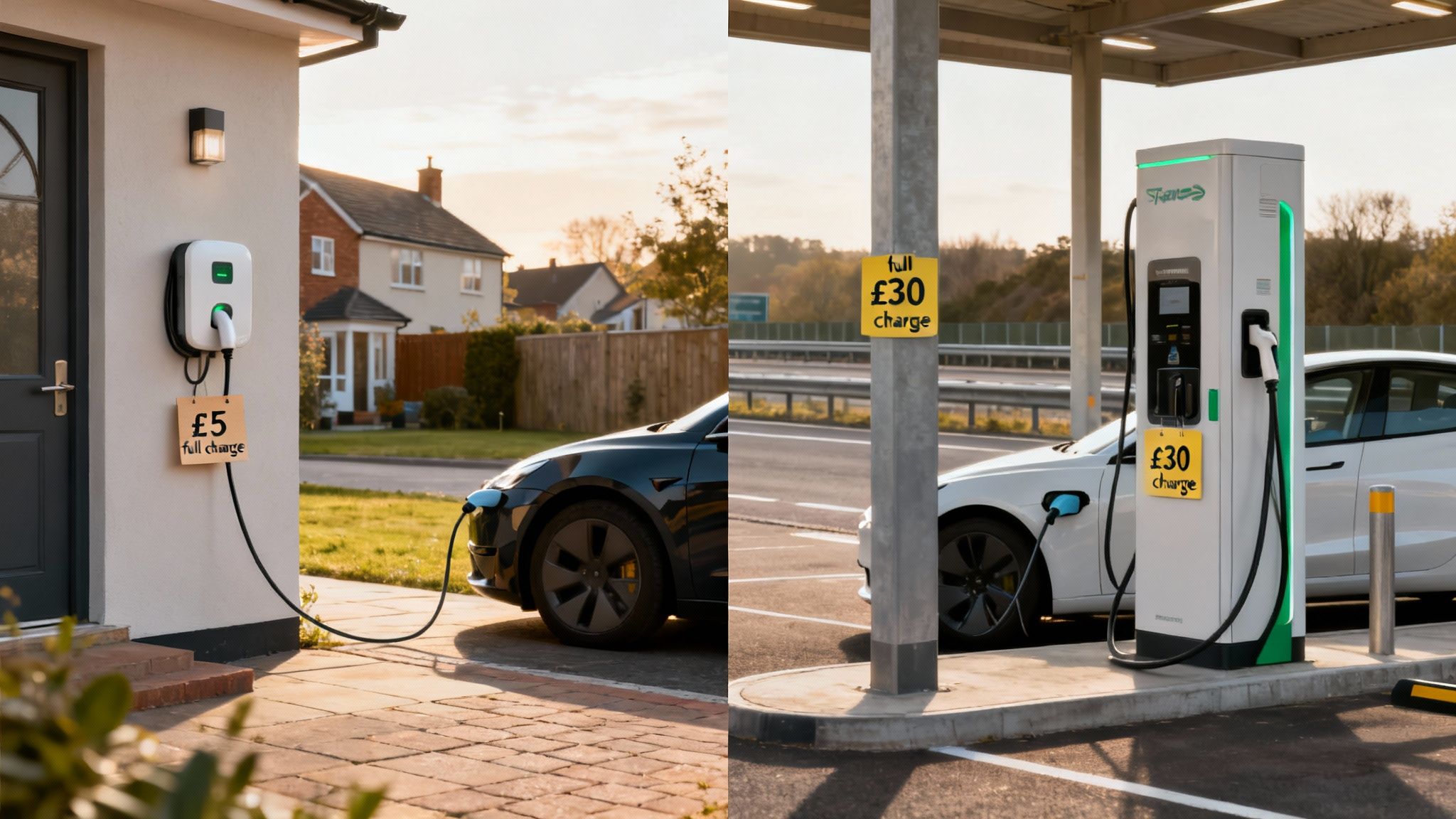Think of it like buying a coffee. Make it at home, and it costs pennies (that’s your home charger on a sneaky overnight tariff). Buy it at a motorway service station when you're desperate, and you'll need to remortgage your house (that'll be the public rapid charger, then). It's the same principle, just with more volts and fewer baristas judging your life choices.