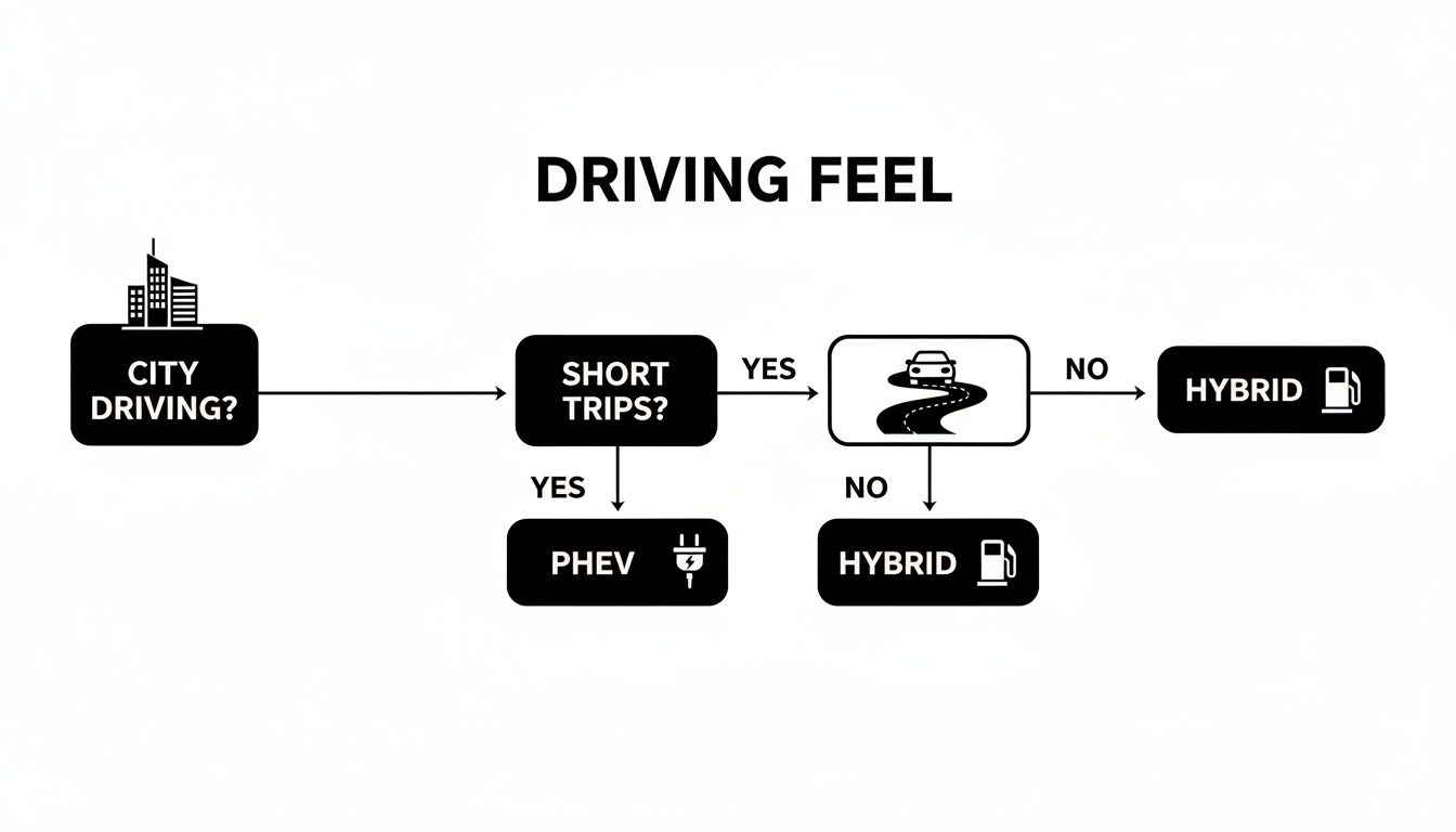 The driving experience isn't about raw 0-60 times. It's about character: a PHEV offers a dual personality—silent city slicker and long-distance cruiser—while a hybrid provides a consistent, predictable, and lighter-feeling drive.