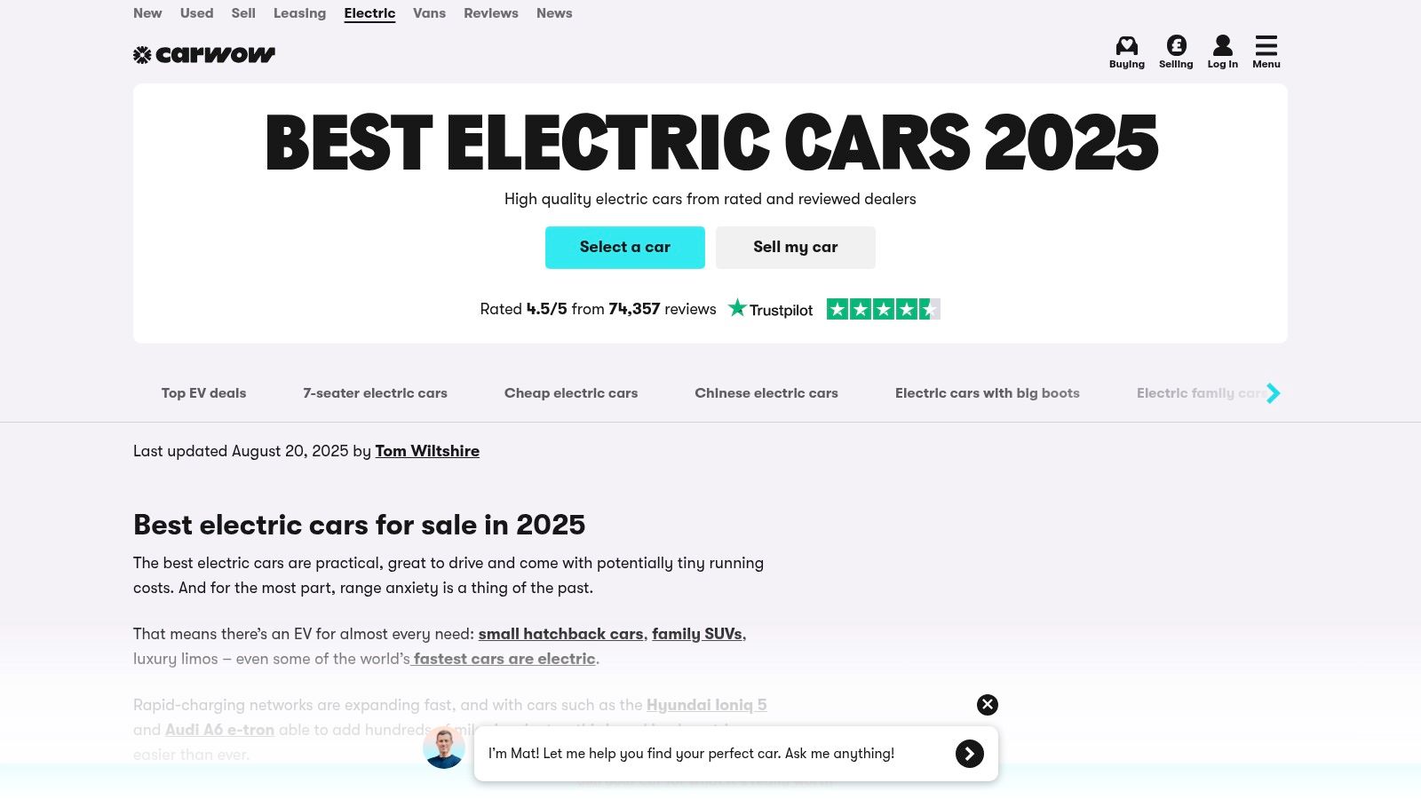 If Auto Trader is the sprawling, digital car supermarket, then carwow is the sharp-suited personal shopper that gets you a great deal without the awkward haggling. Originally making its name by pitting dealers against each other to give new car buyers the best price, it has seamlessly applied this gladiatorial model to the electric vehicle market. It’s the ideal platform for anyone who knows which of the best electric cars UK they want but dreads the thought of a tense showroom showdown over a set of floor mats.