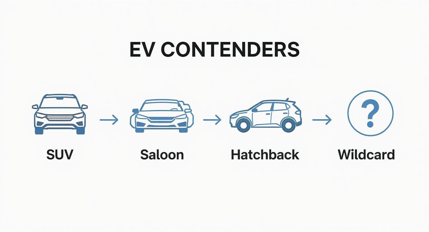 Right then, let's get acquainted with our contenders. For this year's big EV showdown, we've pulled together a fascinating line-up that really shows the breadth of what’s available on the UK market right now. We've intentionally dodged some of the usual suspects to give you a proper look at some of the most interesting metal out there, covering everything from the supremely practical to the wonderfully bonkers. Think of this as the weigh-in before the bell rings.
